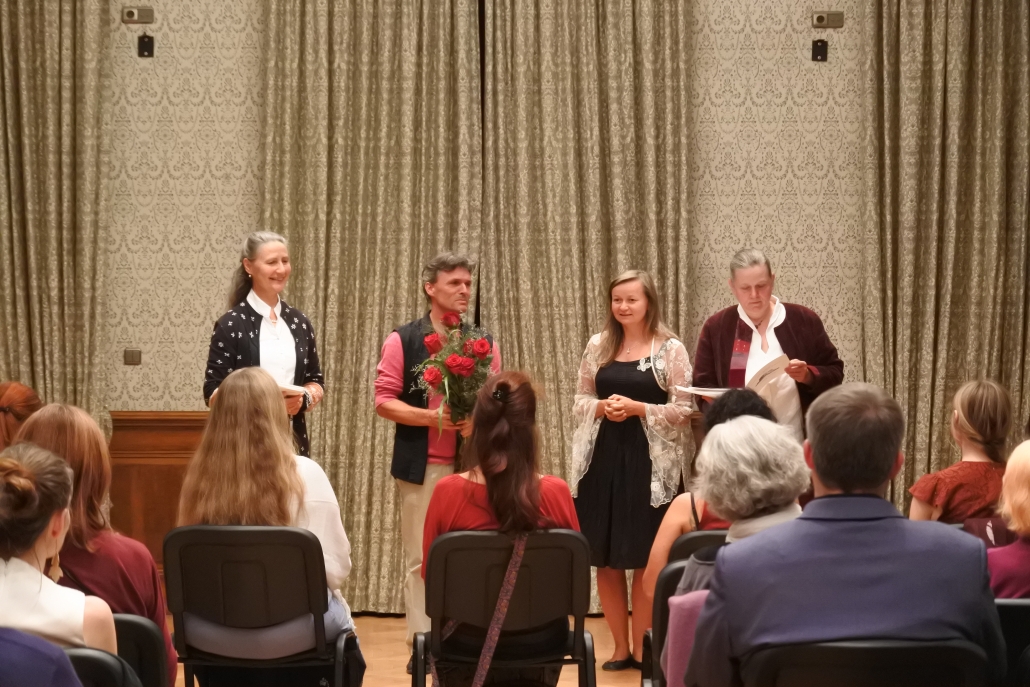 Slavnostní předání diplomů devíti absolventkám Vzdělávání v léčebné eurytmii proběhlo ve Vile Grébovka dne 12. 10. 2018. Mezinárodní kolegium (Ursula Heusser/CH, Hana Adamcová/CZ, Kaspar Zett/CH, Wilburg Keller Roth/AT) s radostí přivítalo v profesi terapeutické/léčebné eurytmie devět nových kolegyň. Fotoalbum ze závěrečného večera je k nahlédnutí pod tímto odkazem: